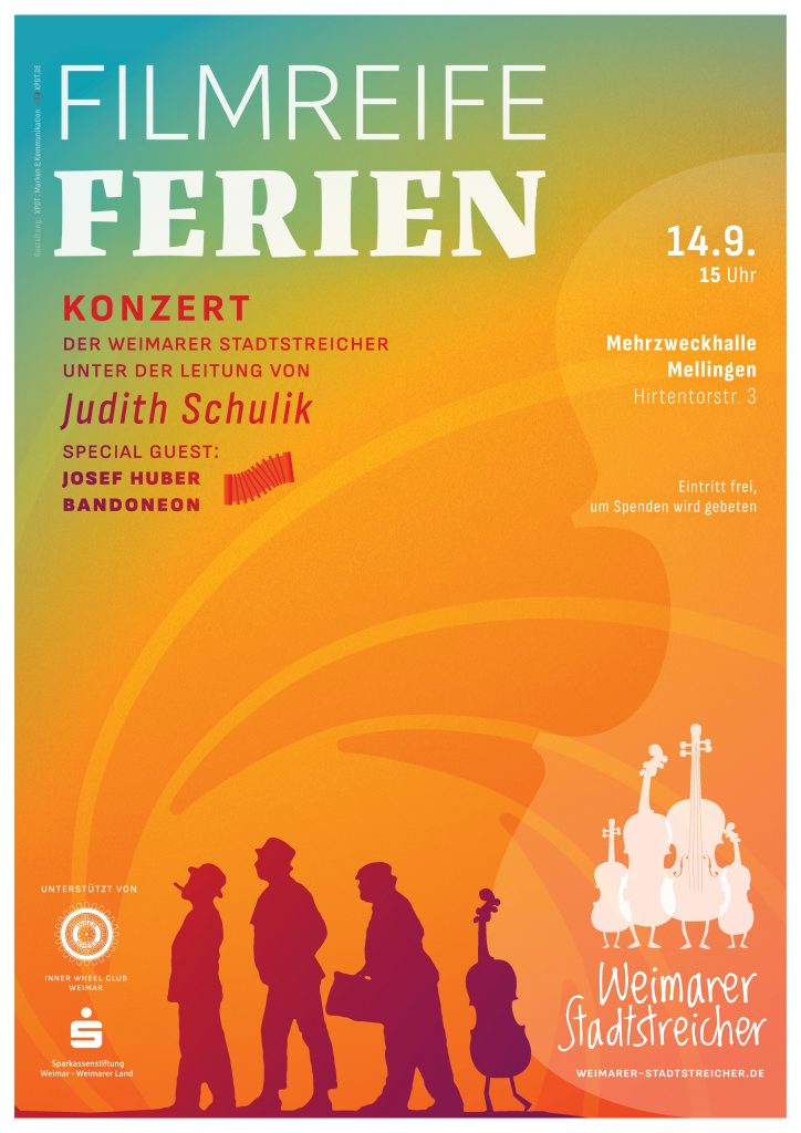 15:00 Uhr Großes Abschlusskonzert in der Mehrzweckhalle mit einem einmaligen Programm der Weimarer Stadtstreicher mit Kaffee und Kuchen