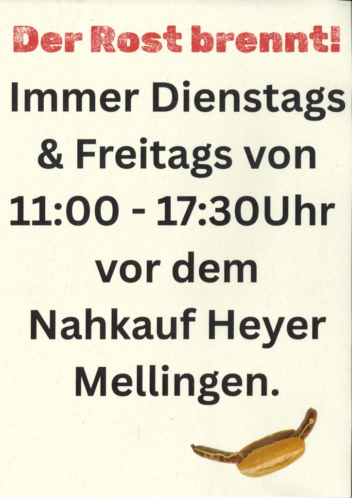 Trödelmarkt Pfarrscheune mit Essen und Getränkeversorgung für alle, Rost brennt, lecker